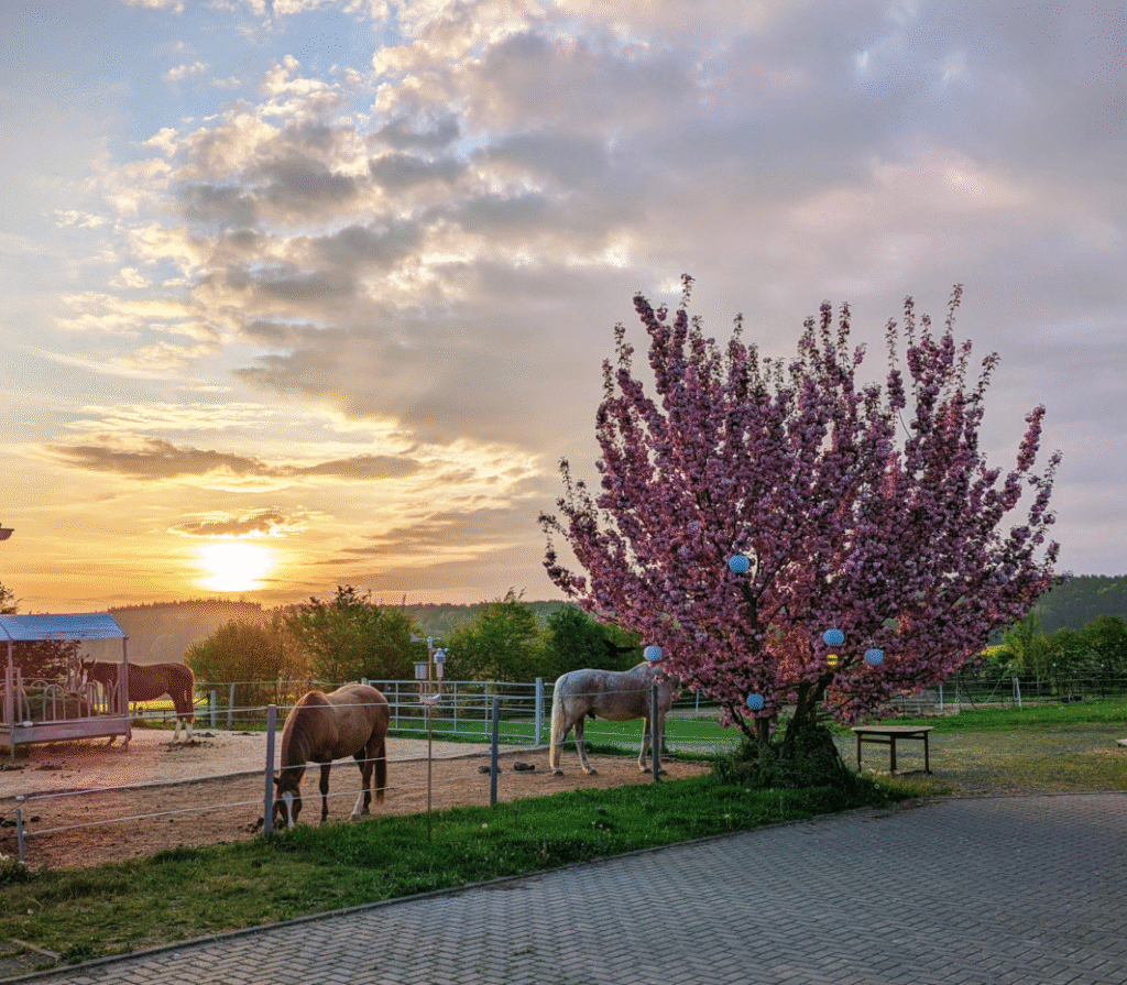 - Gästeunterkunft mit Wohnung (Küche, Bad, Schlaf-/Wohnzimmer) – ideal für Urlaub mit Pferd